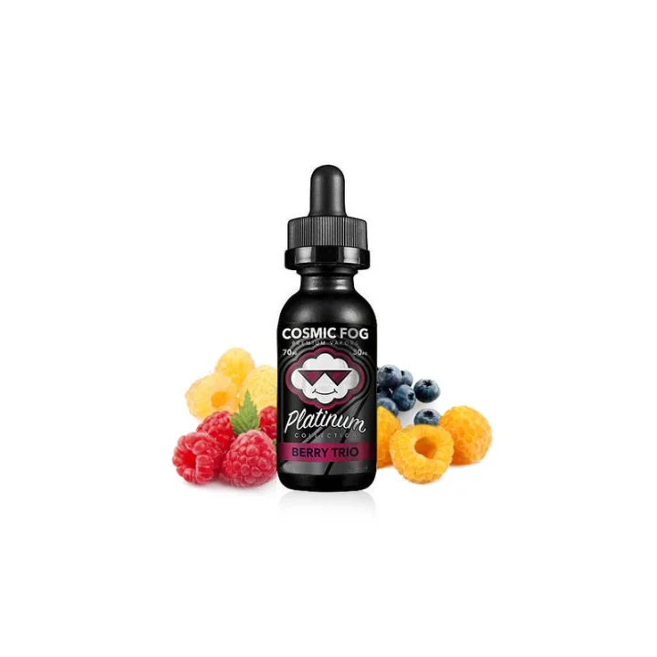 Cosmic Fog Platinum Collection BERRY TRIO 60ml Premium LikitKırmızı, beyaz ve altın ahududuların elektrikli bir karışımı, eski zaman dokunuşlarıyla tatlı kükürt çilek ile birleştiğinde nihai sulu karışım oluşur. Çilek savaşı sonunda bitti ve BERRY TRIO Platin madalyasını aldı.