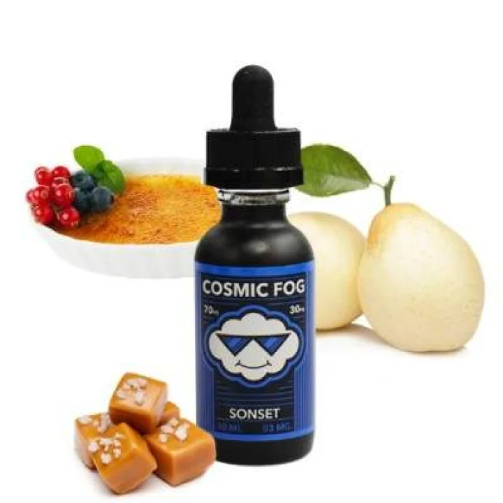 Cosmic Fog SONSET, vücudunuzu ve ruhunuzu dinlendirecek, bahar zamanı sizi Fiji günbatımına taşıyabilen bir damak zevkindir.Bir Japon Nashi armut püresi ile başlanarak sonrasında karamel ve Fransız ilhamından bir Crème brûlée ile harmanlanmıştır.Yakından korunan tarif, daha sonra hafif tuzlu karamelin cömert bir kısmı ile doldurulur..