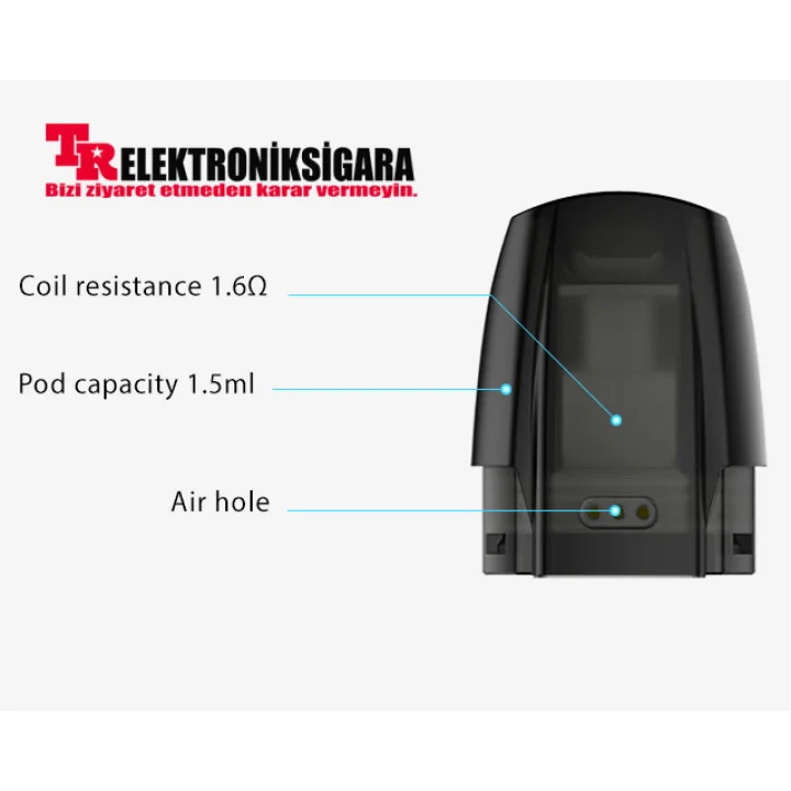 Justfog Minifit Pod Değiştirme Kartuşu buharlaştırıcı içindir. 1.5ml kapasiteli ve 1,6 ohm direnç derecesine sahiptir. Bu yedek manyetik kartuş MTL stili vaping için tasarlanmıştır.