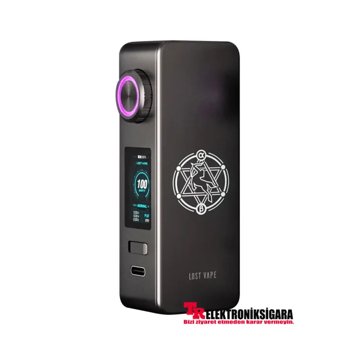 Lost Vape Centaurus M100 Box Mod 5-100W çıkış aralığına sahip olan bu cihaz, DIY Mode desteği sunar ve tek bir 18650 pil ile çalışır.