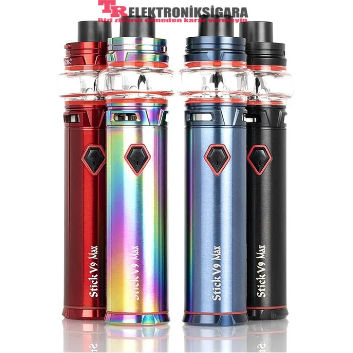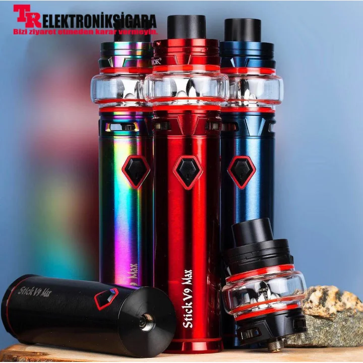 SMOK Stick V9 Max elektronik sigaranın İçerdiği Stick V9 Max tank, en üst döner dolgu tasarımını kullanarak kolayca doldurulan büyük bir 8,5 ml likit kapasitesine sahiptir. Stick V9 Max, şık bir paslanmaz çelik konstrüksiyonun yanı sıra bir bubble cama sahiptir. Stick V9 Max, büyük buhar üretimi için alt hava akımı kontrolü kullanılarak ayarlanabilen ekstra geniş üçlü hava akışı yuvalarına sahiptir. Stick V9 Max tankında yoğun lezzet ve buhar için optimize edilmiş yeni Baby V2 Mesh Coil kullanılmaktadır. Yeni örgü bobinli coiller daha geniş bir ısıtma alanı ve daha hızlı bir ısıtma işlemi sağlar.Sadece tankınızı likit ile doldurun ve buharlamanın keyfine bakın.